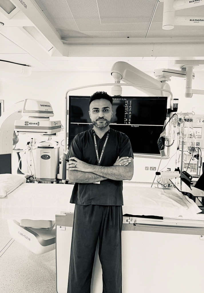 I trained in medicine at Cambridge University and University College London with the award of numerous prize during my training. Following this, I was awarded membership of the Royal College of Physicians whilst training at Hammersmith, UCLH, Harefield and the Royal Brompton Hospitals in London. During my Cardiology training, I did award-winning research in Cardiovascular and Coronary Physiology, which was funded by a prestigious British Heart Foundation fellowship. This gained me an award winning PhD degree from the University of London. Following this, I completed general and interventional cardiology training and a fellowship at Barts Heart Centre and was appointed Honorary Consultant Cardiologist at University College London Hospitals NHS Trust. Following this I was appointed Consultant Interventional Cardiologist at Glenfield Hospital, covering Leicester and the wider East Midlands region.